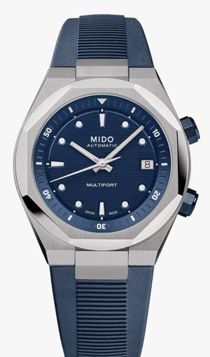Die Kühnheit der Multifort 8 steht für Veränderung! Das dynamische und moderne Design mit einer 8-eckigen Lünette wird durch ein horizontales, geprägtes Zifferblatt betont, während weiße Super-LumiNova® die Sichtbarkeit der Indizes verbessert. Dieses Juwel vereint Technologie und Geometrie und ist mit einer innenliegenden drehbaren Lünette ausgestattet, die über die Krone bei 2 Uhr bedient wird, während Uhrzeit und Datum über die Krone bei 4 Uhr eingestellt werden können. Dieses Modell ist ausgestattet mit Kaliber 72 mit Nivachron™-Technologie, ein Uhrwerk, das speziell aufgrund seiner geringen Höhe ausgewählt wurde, was ein 40-mm-Gehäuse ermöglicht, das ebenso schlank wie raffiniert ist.